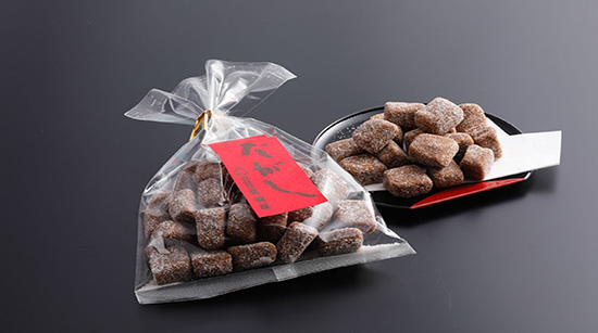 きな粉と麦こがし、すなわちはったい粉と香煎、煎り粉に水あめで練り合わせたやわらかくて香ばしい昔懐かしい味のお菓子です。秋篠宮殿下が平成24年ぎふ清流国体の閉会式にご出席のため飛騨高山へお越しになられた際、お買い求めいただきました「げんこつ」です。