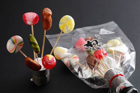 縁日の屋台を思い出すようなかわいい棒付き飴