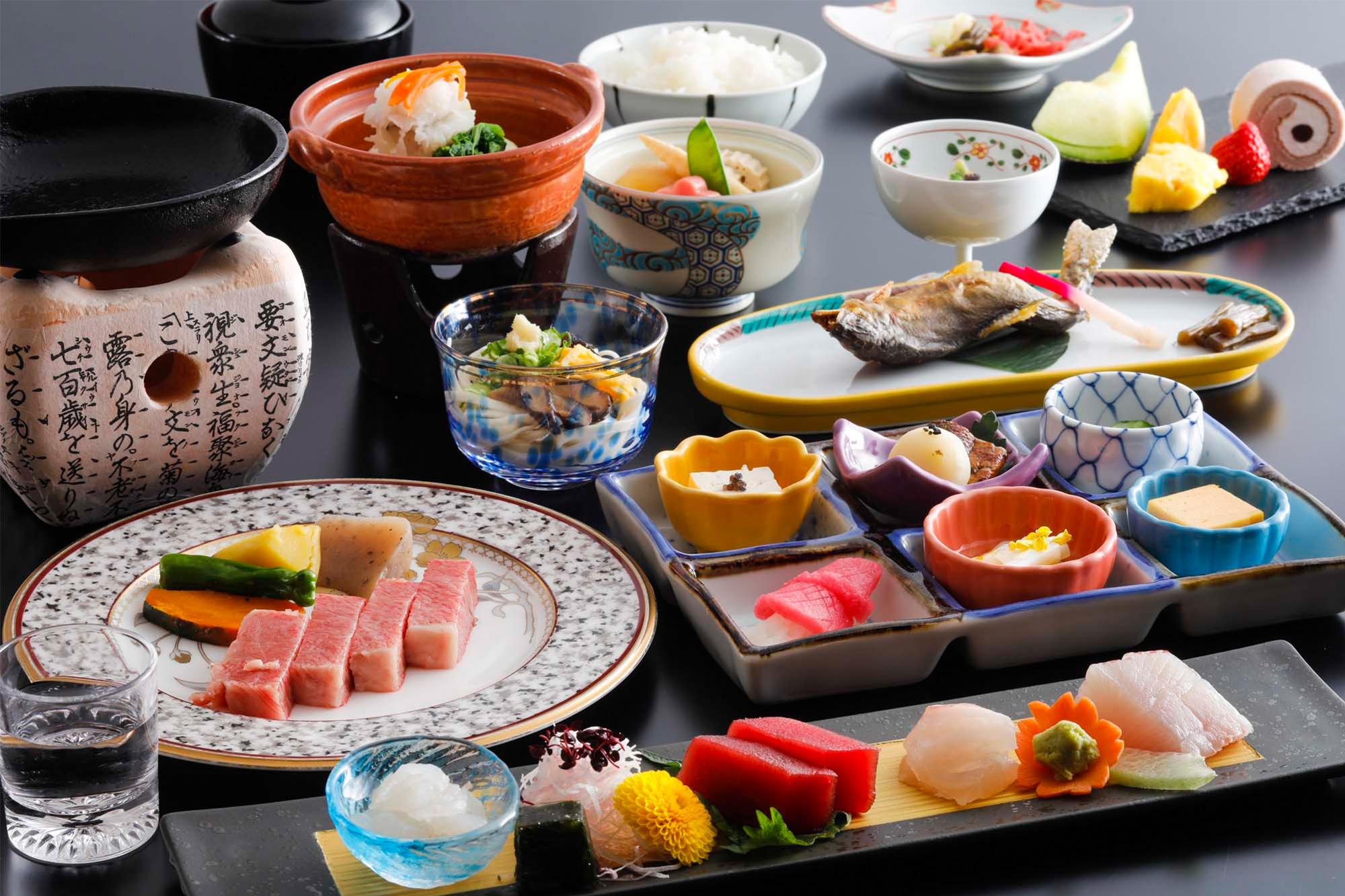 刻み⾷やアレルギー、ベジタリアンの⽅のためのお⾷事をご⽤意いたします。ご希望の方はご予約の際お申し付け下さい。また新しい取り組みとしてカロリー制限のお客様⽤としてメニューをご準備しました。約800キロカロリーに抑えております。ご希望の⽅は3⽇前までにご予約ください。