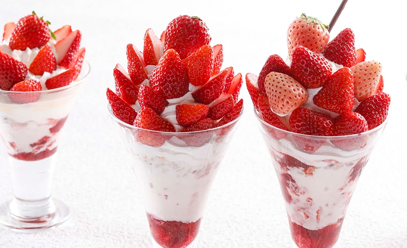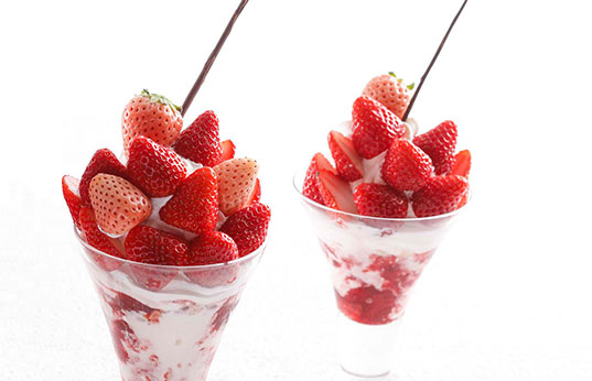 ひとくちだけ楽しみたい方も、ファミリーでシェアしたい方も国産苺でデコレーションしたパフェを売り切れる前に是非ご賞味ください。