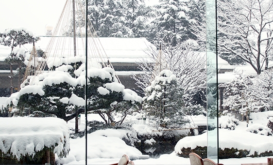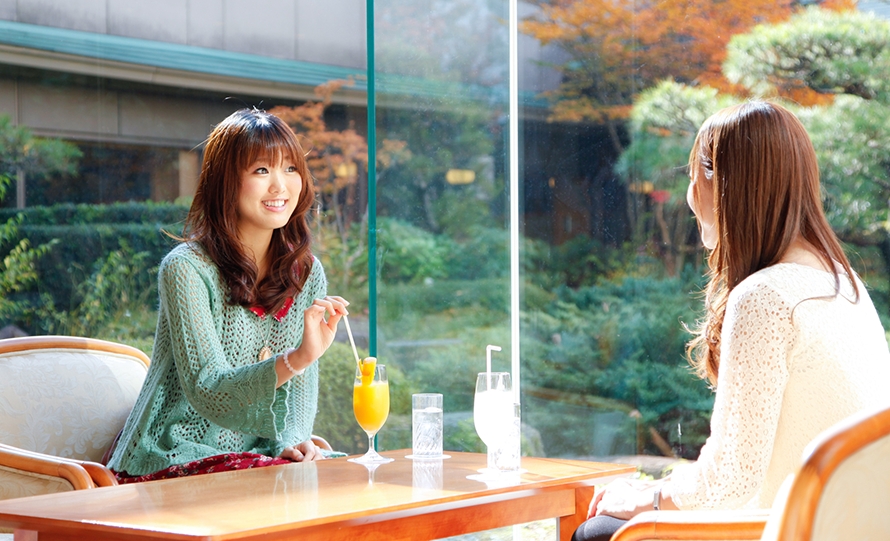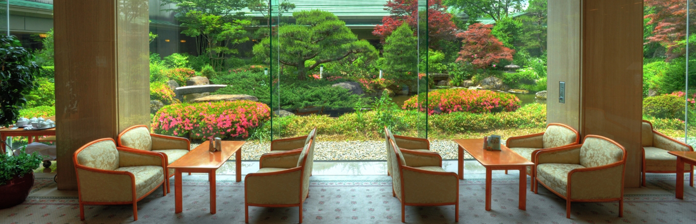 情緒豊かな当ホテル自慢の日本庭園を望むラウンジ。