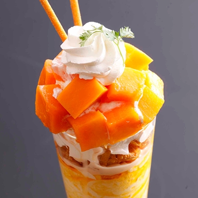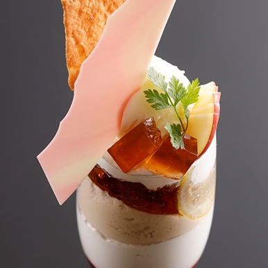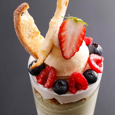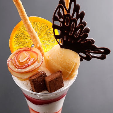パティスリー「ベル・アンジュ」のパティシエ宅野が監修する季節の素材を活かした高山でしか味わえない特別なパフェ。生クリームを毎朝泡立てるなど新鮮さにこだわる贅沢なパフェを是非お召し上がりください。