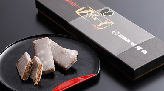 音羽屋の定番商品「かたりべ」に平瀬酒造の久寿玉を練りこんだ、ちょっと大人なお菓子です。口に入れると久寿玉のいい香りがほんのりと口に広がります。