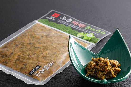 春の味覚「ふきのとう」を甘めのこうじ味噌で煮込み、きゅうりの刻み漬けに加えました。シャキシャキとした歯ごたえと、ふきのとうの爽やかな苦みや味噌の塩気、きゅうりの爽やかさが口の中に広がるお漬け物です。あったかいご飯にさっと混ぜ合わせたり、お茶漬けやおにぎりの具材としてもおすすめで、ご飯がすすむこと間違いなしです。