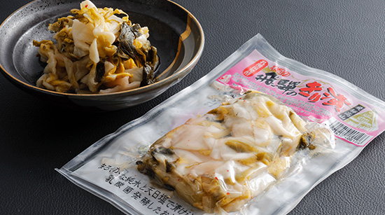 青首大根と赤かぶらを漬けた飛騨でも大人気の漬物。クセになる絶妙な酸味と塩味は「にっこり」すること間違いなしです。